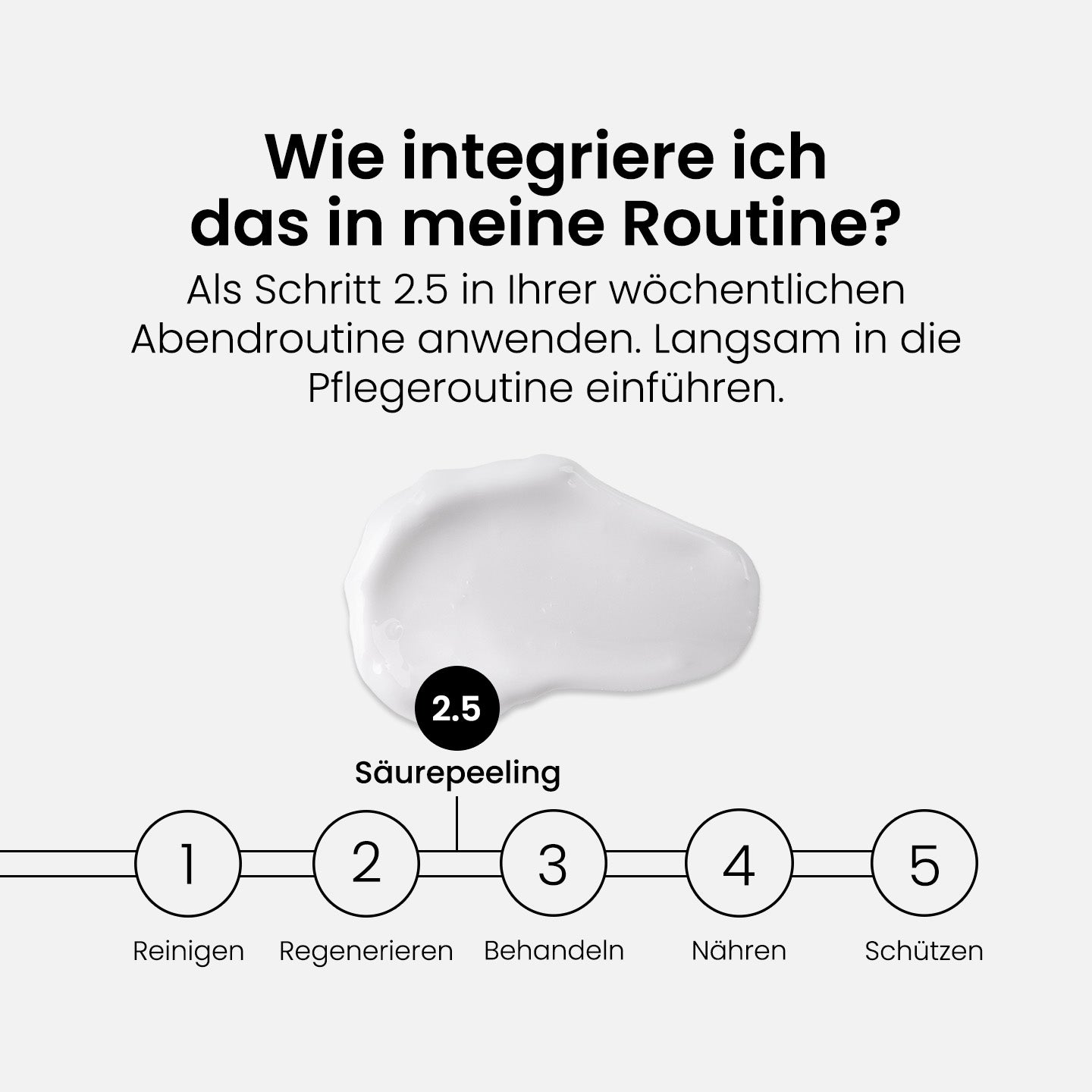 ⚠️An Tagen, an denen Sie AHA verwenden, wählen Sie entweder den AHA Peeling Toner oder die AHA Peeling Lotion, jedoch nicht beides gleichzeitig. Vermeiden Sie an diesen Tagen auch andere Wirkstoffe wie BHA, Retinol oder Vitamin C, um Ihre Haut nicht zu überfordern.