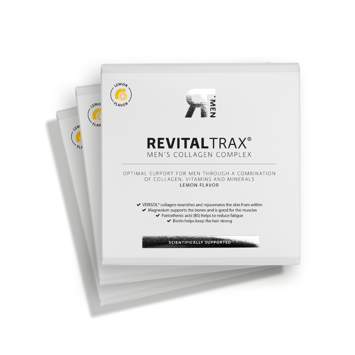 Mit dem RevitalTrax Kollagen Komplex für Männer können Sie diesem Prozess von innen entgegenwirken. Die VERISOL® bioaktiven Kollagenpeptide in diesem Komplex wurden speziell entwickelt, um vom Körper optimal aufgenommen zu werden und die Haut von innen heraus zu stärken.