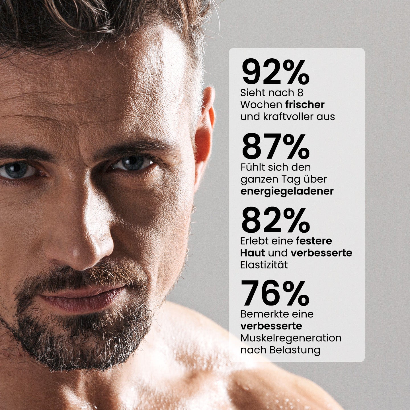 „Jeden Morgen starte ich mit RevitalTrax. Es ist leicht zuzubereiten und ich merke, dass ich den Tag mit mehr Fokus und Energie beginne. Mein Haar fühlt sich stärker an, meine Haut wirkt gesünder und ich fühle mich vitaler. Eine Investition in mich selbst, die ich jedem Mann empfehlen kann.“
