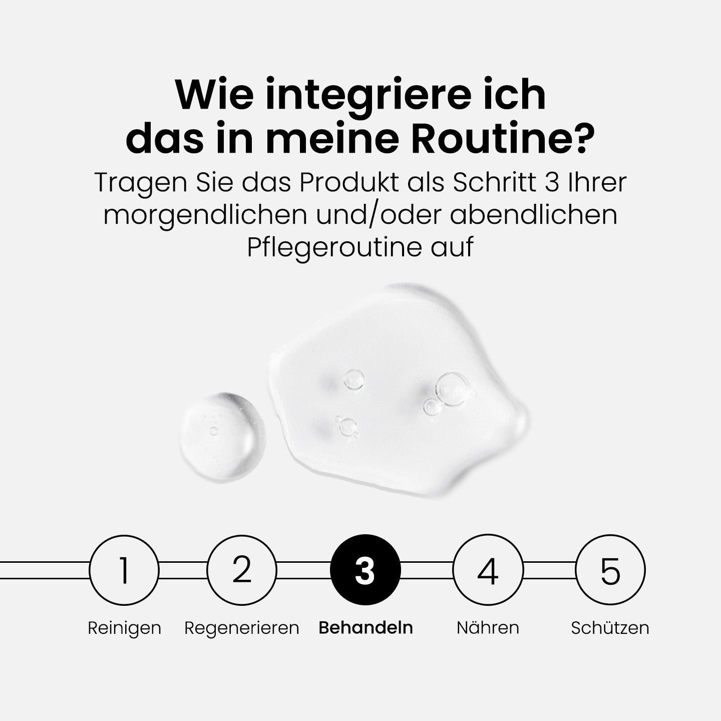 Verwenden Sie das Serum zweimal täglich, um optimale Ergebnisse zu erzielen. Sie können es mit einem weiteren RevitalTrax-Serum kombinieren. Geeignet für Männer und Frauen.